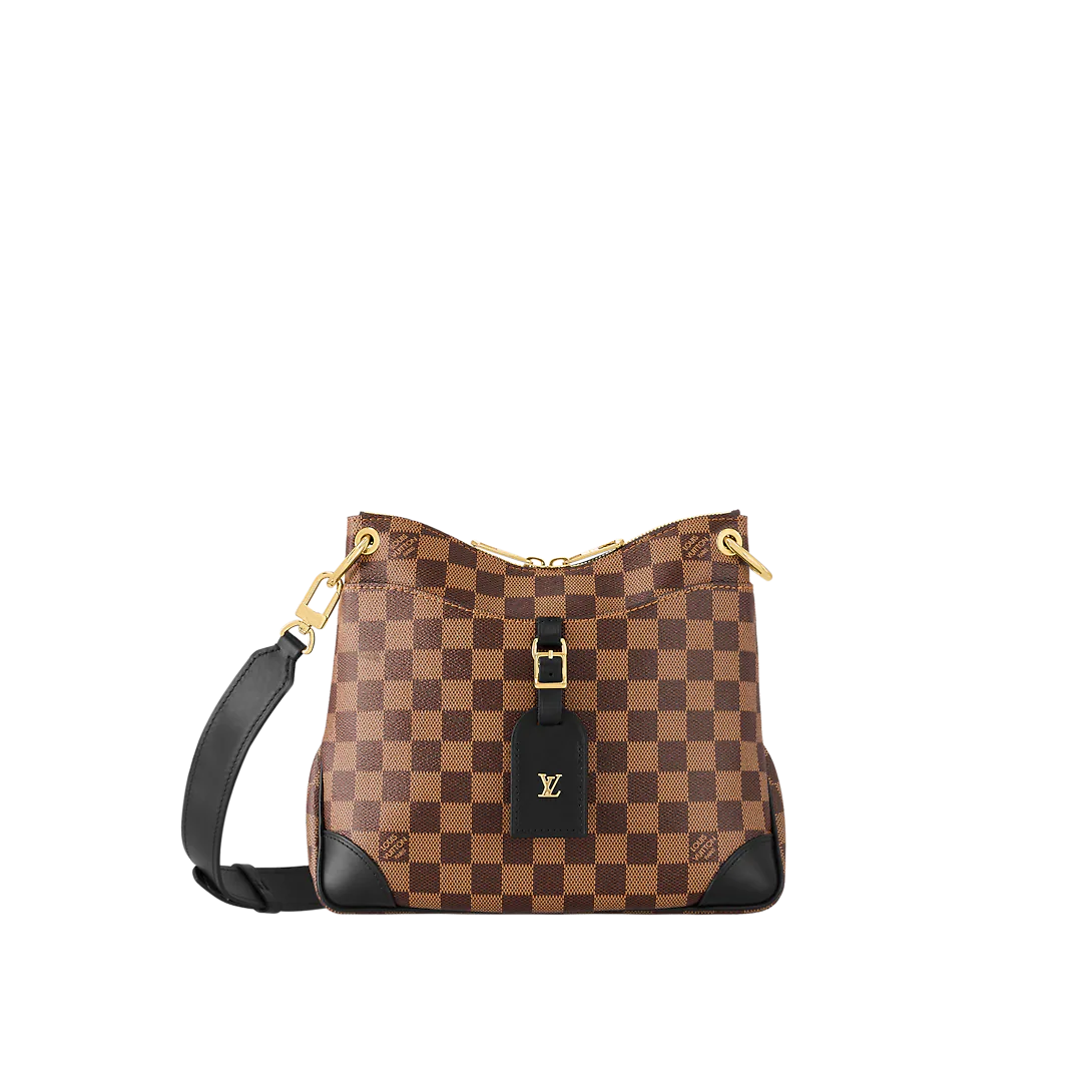Versatile and solidly on-trend, the Odeon MM bag is made from Damier Ebene canvas and finished with black leather trim, corners and name tag for a timeless feel. The body-friendly design and large capacity make it ideal for an everyday use. The adjustable leather strap allows two carry options: shoulder and cross-body.