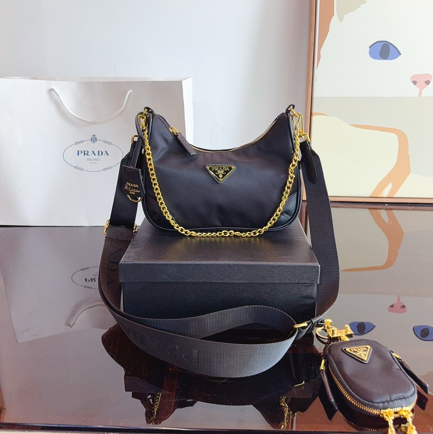 - Removable Re-Nylon trick with logo and Re-Edition leather key ring