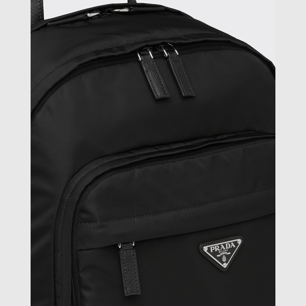 This roomy backpack with a technical look is made of Re-Nylon, the innovative technical fabric produced from recycled plastic trash recovered in the ocean. The design of the accessory, with main compartment with zipper closure, stands out for its Saffiano leather details. Saffiano leather, an iconic material of Prthtada, is synonymous with luxury and identifies with traditional Italian leather goods production. The calf leather of the highest quality is defined by a crosshatch pattern and wax finish.