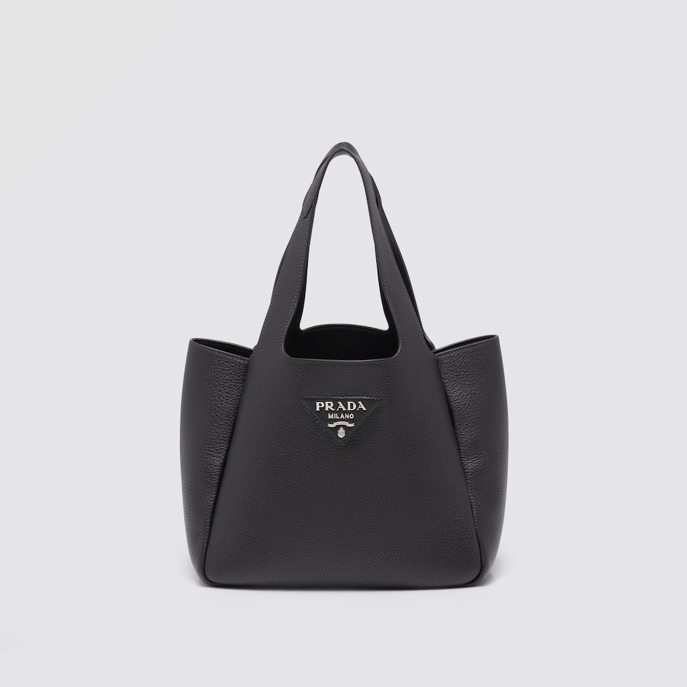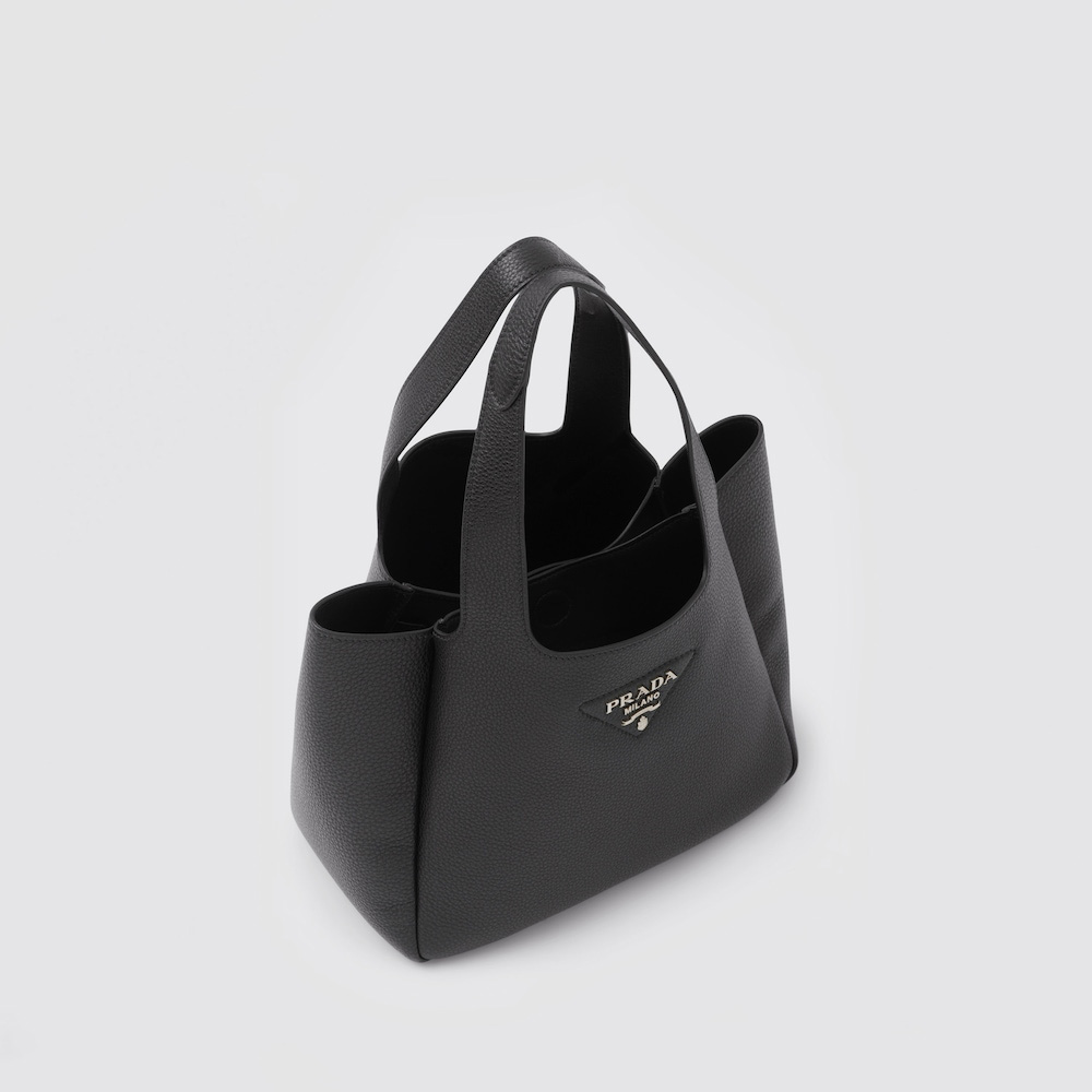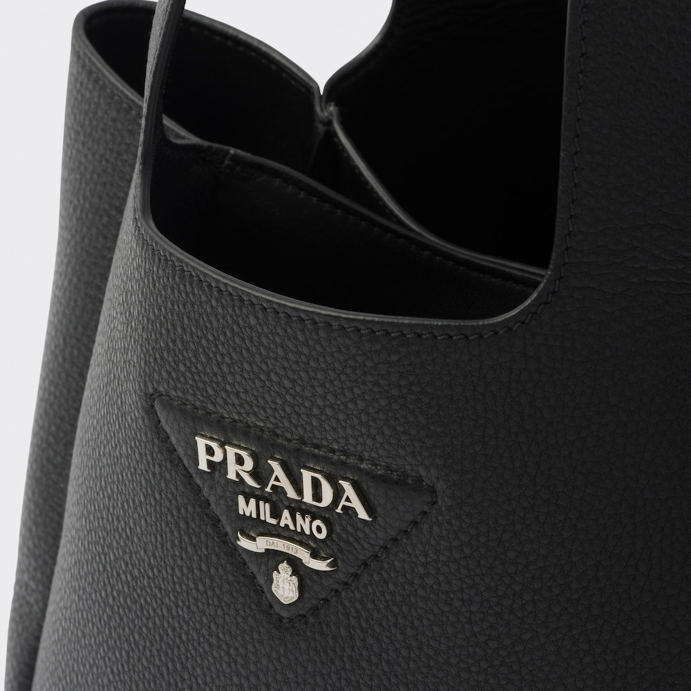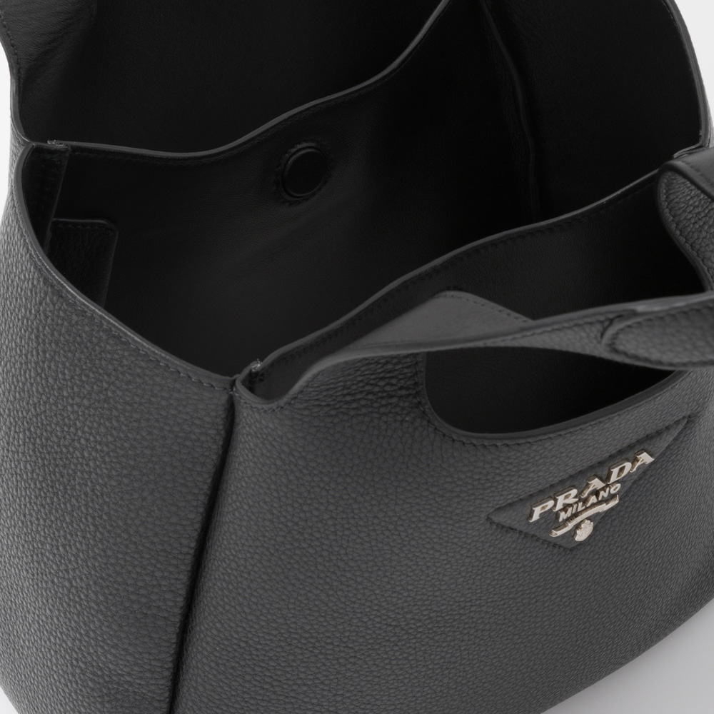This soft leather tote introduced for the Fall Winter 2020 collection presents a new interpretation of the triangle logo, traced by stitching with the Prthtada metal lettering logo illuminating its center. The reverse stitching emphasizes the soft, rounded silhouette that comes with a double leather handle and magnetic button closure. The nappa interior has three compartments.