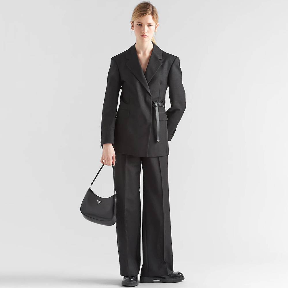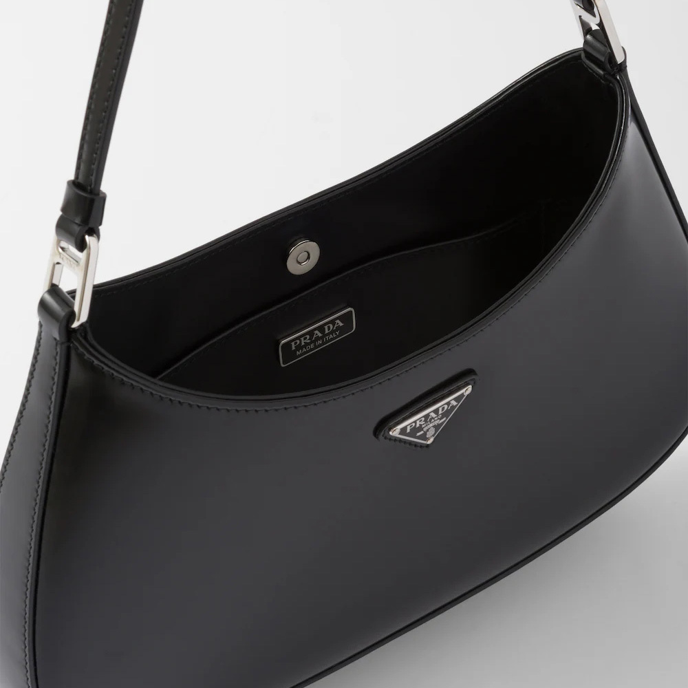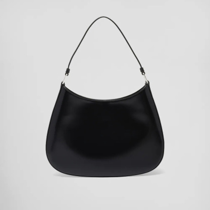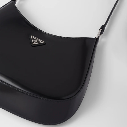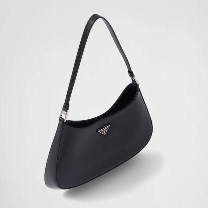 The Prthtada Cleo bag with sophisticated allure reinterprets an iconic design of the brand from the 1990's. Sleek curved lines emphasized by the particular construction rounded on the bottom and sides give this hobo bag a soft, light look. Brushed leather, a modern and versatile material that is distinctive in Prthtada collections, is ideal for creating always new combinations and contrasts. The enamel triangle logo decorates the silhouette.
