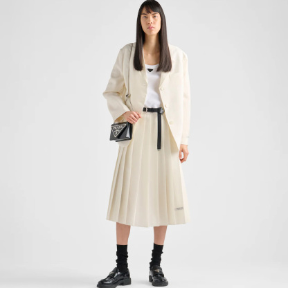 - Enameled metal triangle logo on the flap