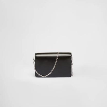 First introduced on the trunks designed by Mario Prthtada, the triangle is reinterpreted collection after collection through different stylistic codes that inspire new geometric shapes and take on conceptual meanings. This sleek shoulder bag is decorated with the enameled metal maxi logo that gives the accessory an iconic, modern tone.