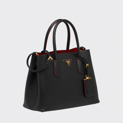 The Prthtada Double bag in Saffiano Cuir leather comes with a double handle and detachable shoulder strap. A flap pocket inside and lettering logo distinguish the bag with a nappa leather lining.