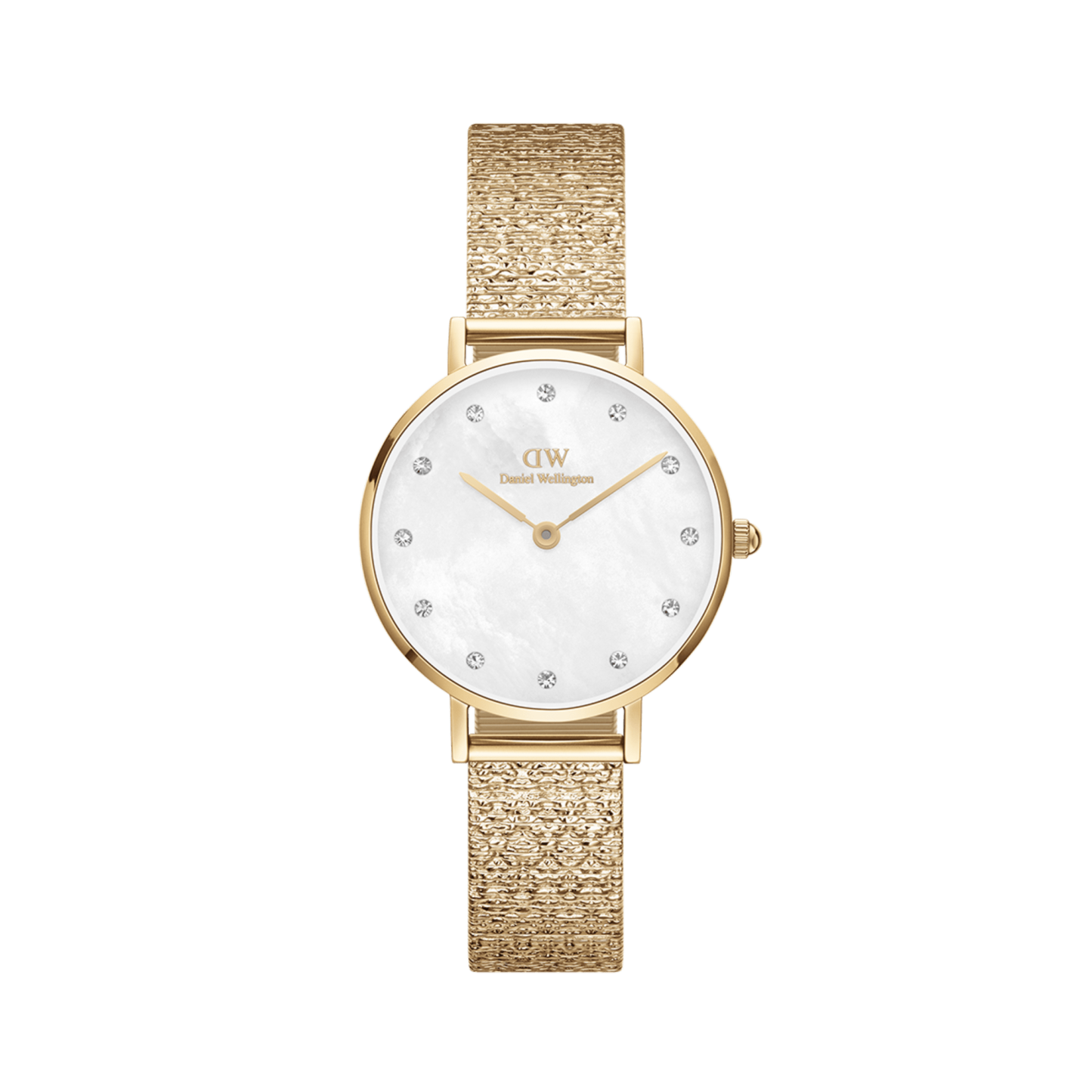 The Petite Lumine Pressed Piano in white is proof that nature can be the ultimate luxury. Each dial is carefully crafted from mother of pearl, so it has a unique pattern. Glistening crystals mark the indexes and give the watch face a soft inner glow. The entire timepiece is supported by our new pressed Studio Strap in shimmering metal, with a cloud-like elevated pattern that mirrors the mother of pearl. Choose your favorite from the three available colors and enjoy a watch like no other.