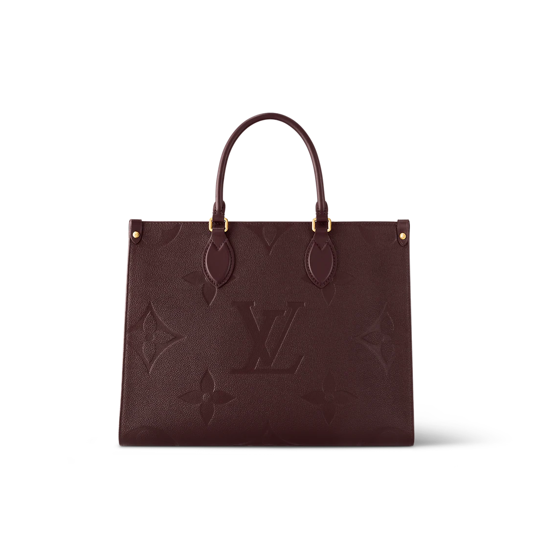The OnTheGo MM tote is made from grained Monogram Empreinte cowhide leather, a soft leather that is embossed with a large Monogram pattern. Large enough for daily essentials such as a laptop, it features two sets of handles, short and long, for carry options. The inside zipped pocket and two inside flat pockets help keep things organized.