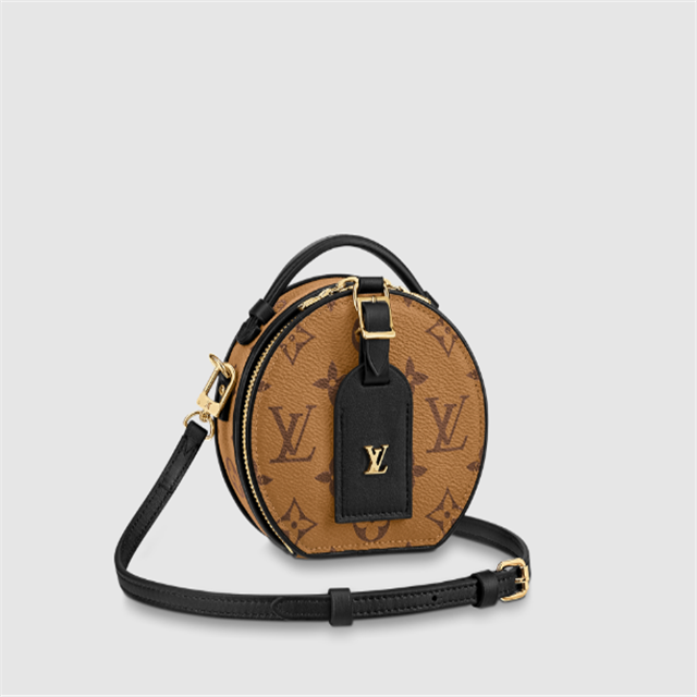 Fashioned from Monogram Reverse canvas, the Mini Boite Chapeau delights with its iconic shape and classic Lothtuis Vuithttton details such as the leather name tag and interior malletage quilting. The zip closure reveals a well-organized inside with two large gusseted compartments. It can be worn as a belt bag, carried by the handle, on the shoulder thanks to the removable strap.