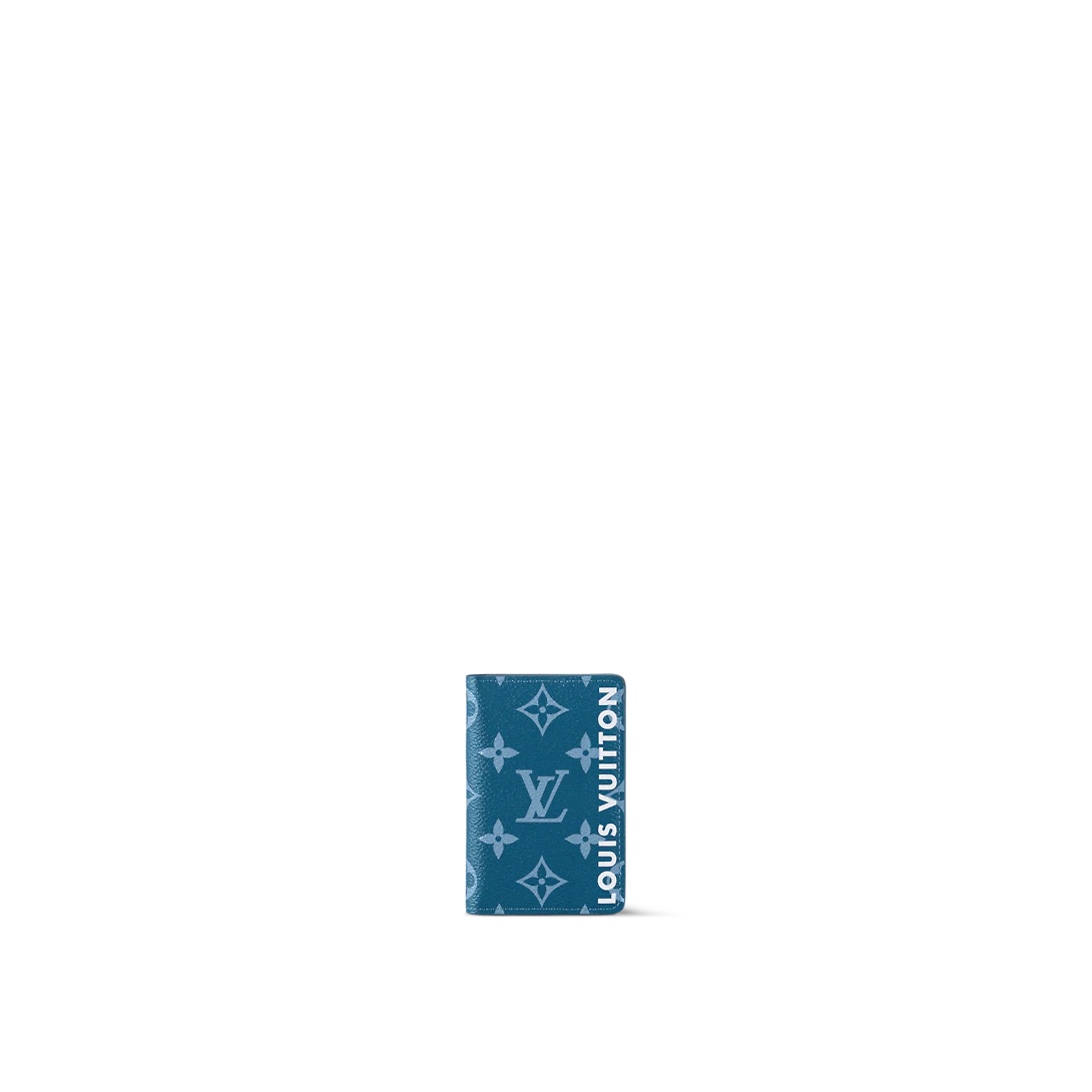 The Pocket Organizer looks sleek in Monogram coated canvas with the interior in a contrasting color. Lothtuis Vuithttton is written vertically on the side, in white lettering. Compact yet practical, it has three card slots and five inside pockets, as well as a flat pocket on the outside.