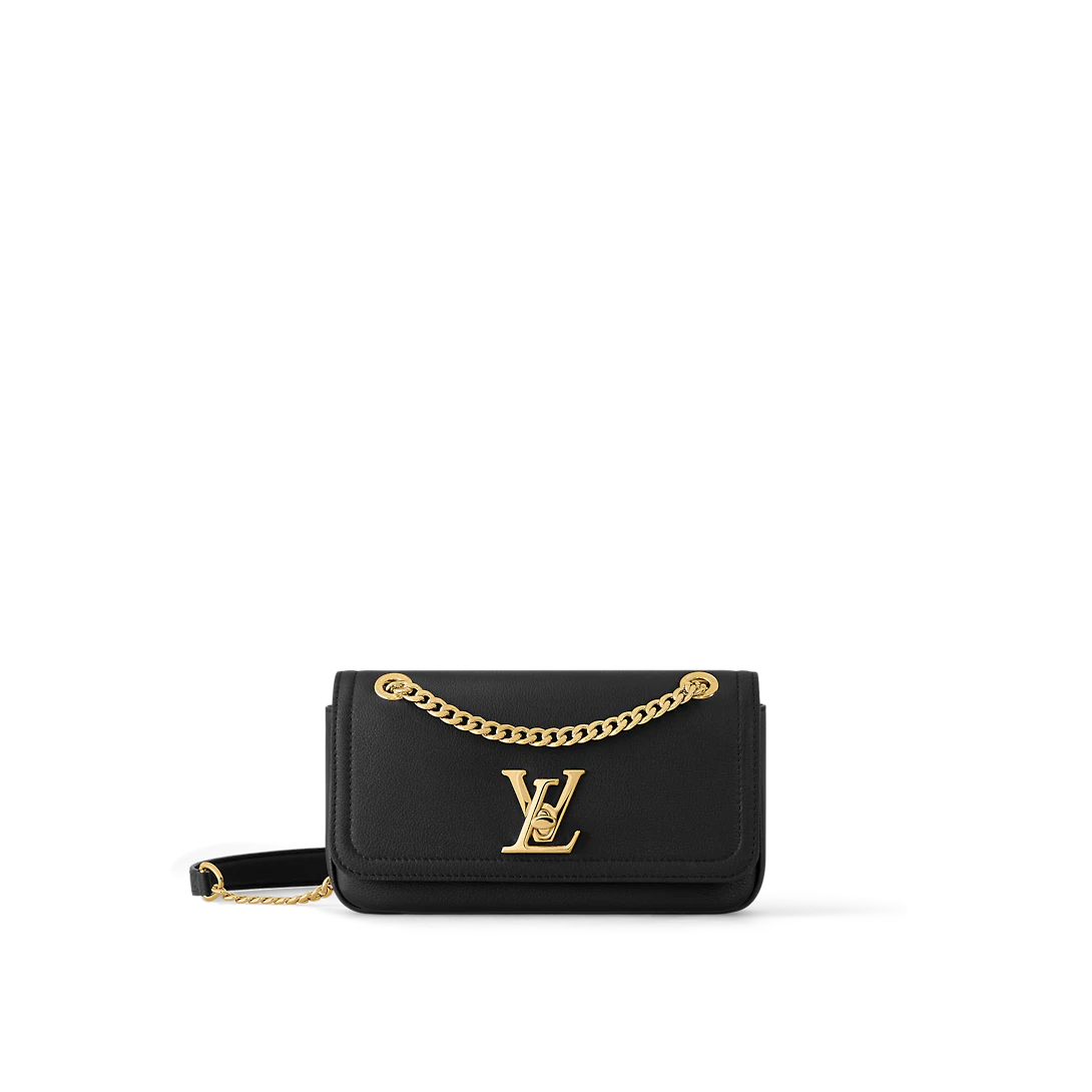 Made from grained calfskin leather, the LockMe Chain Bag East West, with its urban 90’s vibe, is the latest newcomer to the list of day-to-evening wardrobe essentials. Its compact proportions, sliding gold-color chain, and LthtV Twist lock bring sophistication to the bag. It can perfectly fit daily belongings such as a wallet or phone.