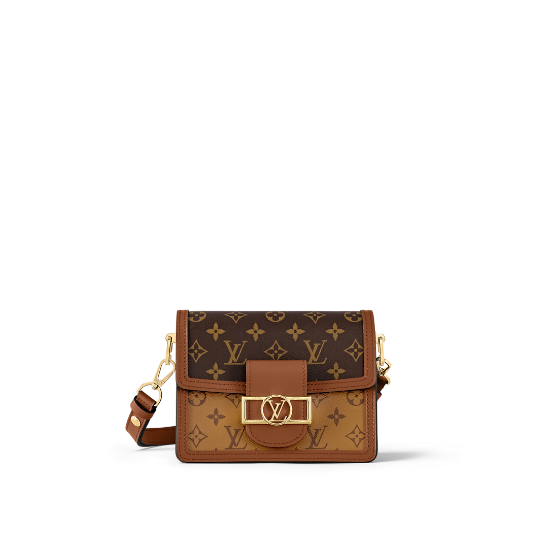 For Spring-Summer 2019 Nicolas Ghesquière unveils a new must-have: the Dauphine Mini handbag. This adorably compact model is crafted from Monogram and Monogram Reverse canvas, trimmed with cowhide-leather. The high-shine LthtV lock and leather smart strap add a modern twist to this signature piece, which is perfectly sized for day-to-evening wear.