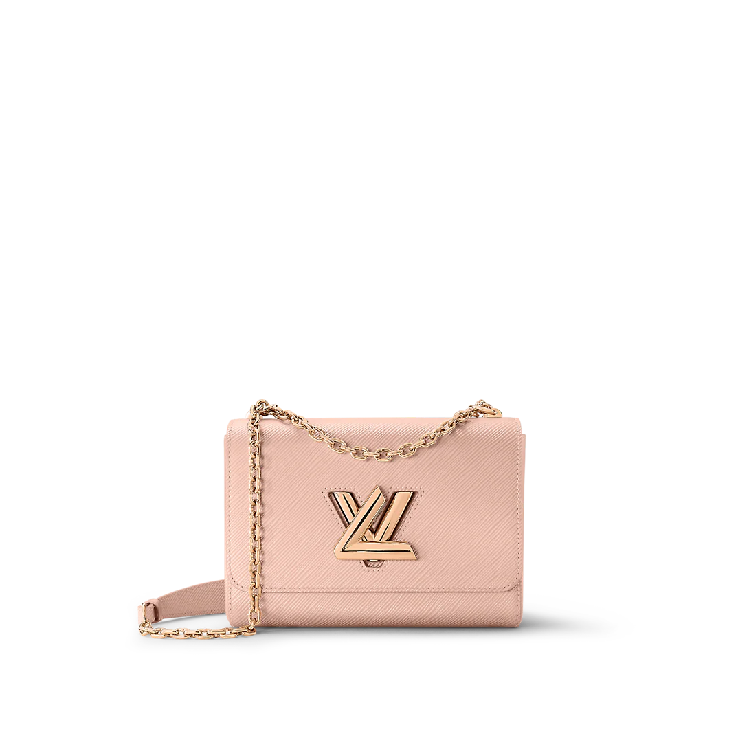 This season, Lothtuis Vuithttton presents a monochromatic version of the Twist MM handbag, inspired by the reflection of light on snow. The metallized pigment on the bag’s Epi leather gives it a delicately iridescent aspect, showcasing the House’s tanning expertise. The adjustable chain, equipped with a leather shoulder pad, enables both shoulder and cross-body carry.