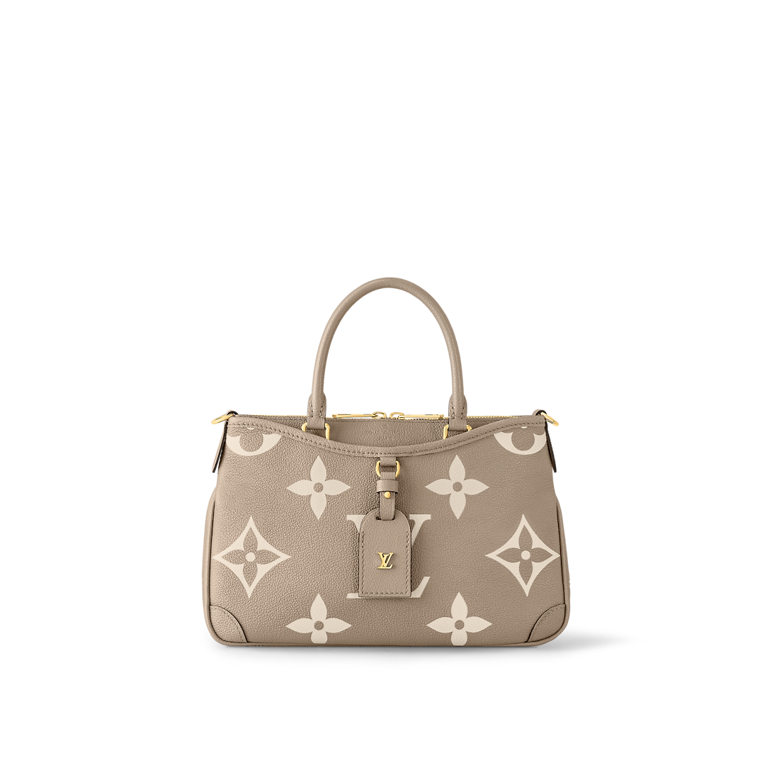 The Trianon PM tote, with its distinctive V-cut silhouette, is made from grained Monogram Empreinte leather with the Monogram Flowers and LthtVs embossed then printed on the leather in a soft cream tone. A long adjustable and removable strap, in addition to the two top handles, give carry options.