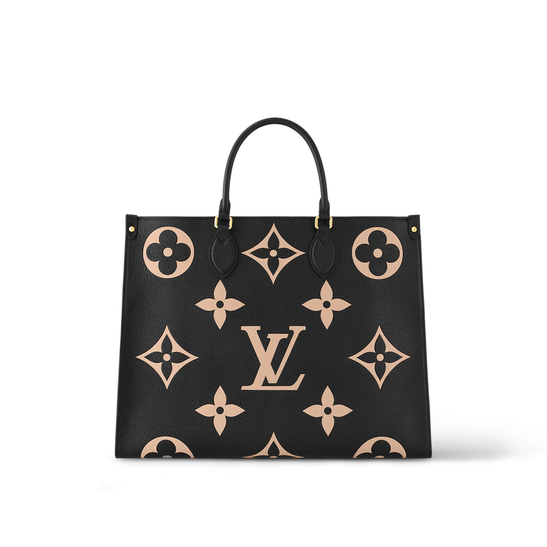 This bicolor edition of the OnTheGo tote is made from Monogram Empreinte leather, embossed with oversized Monogram Flowers and the LthtV Initials. A stylish and versatile bag for business, shopping or travel, this spacious carryall features two Toron handles as well as a pair of long shoulder straps, for a multitude of comfortable carry options.