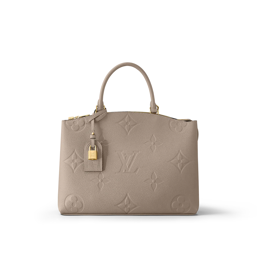 Both chic and impeccably functional, the Grand Palais tote bag is made from soft-grained leather, embossed with an oversized Monogram pattern. Its name tag and gold-color padlock evoke the House's travel heritage. An ideal day-to-business bag, its well-organized interior includes multiple pockets and compartments. It offers several carries: hand, elbow and cross-body thanks to its ajustable and removable strap.