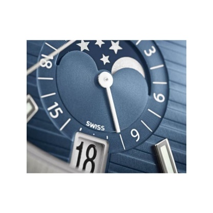 | Features | Day, date, month in apertures. Moon phases. 24-hour indication. Sweep seconds hand. |