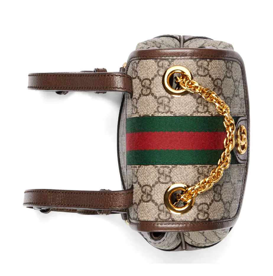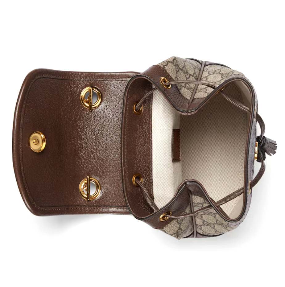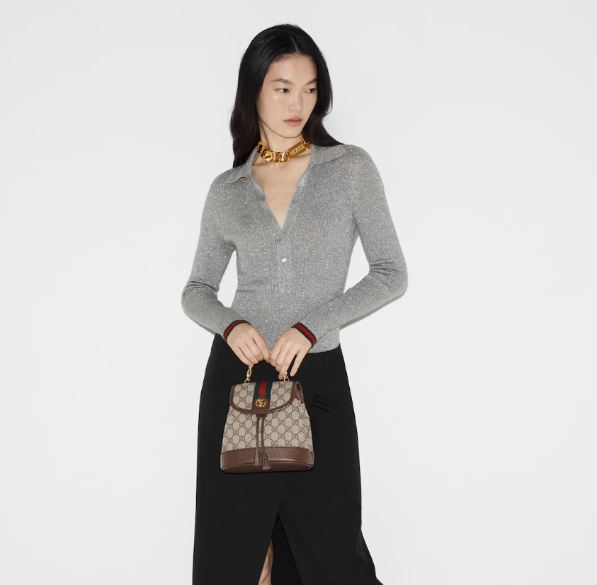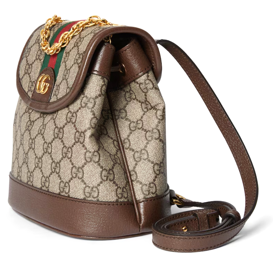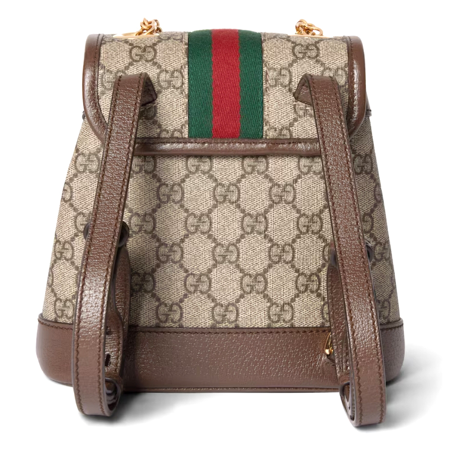 Gucci heritage meets contemporary design with the continuation of Ophidia. This backpack is presented in beige and ebony GG Supreme canvas, enriched with the historic Web. Adjustable shoulder straps complete the modern design.