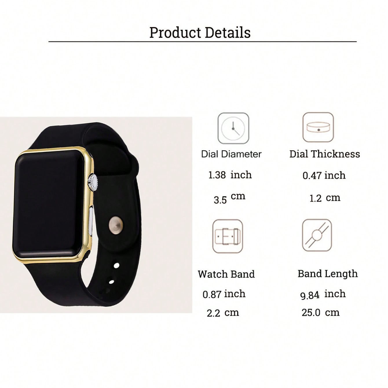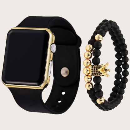1pc Black Plastic Strap Fashionable Square Dial Electronic Watch & 2pcs Bracelet, For Daily Life