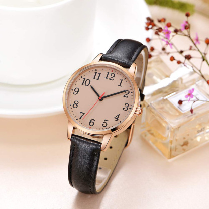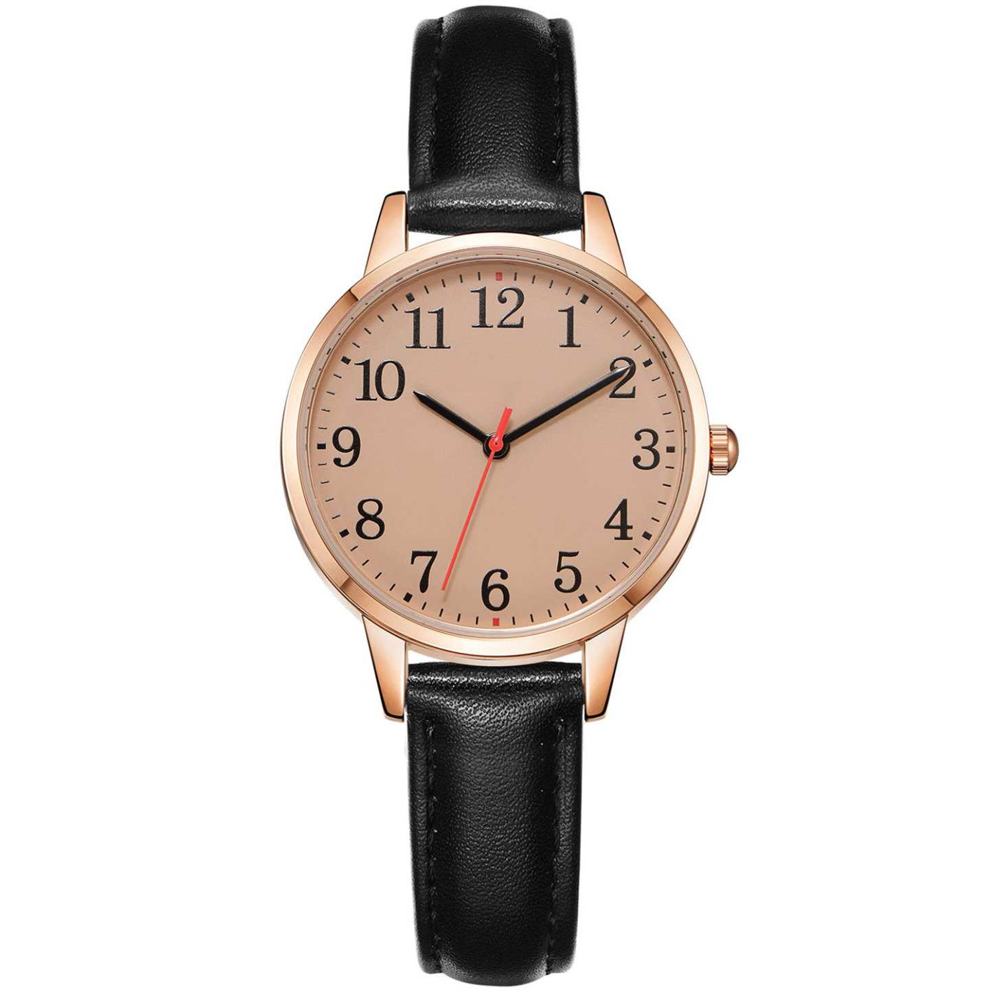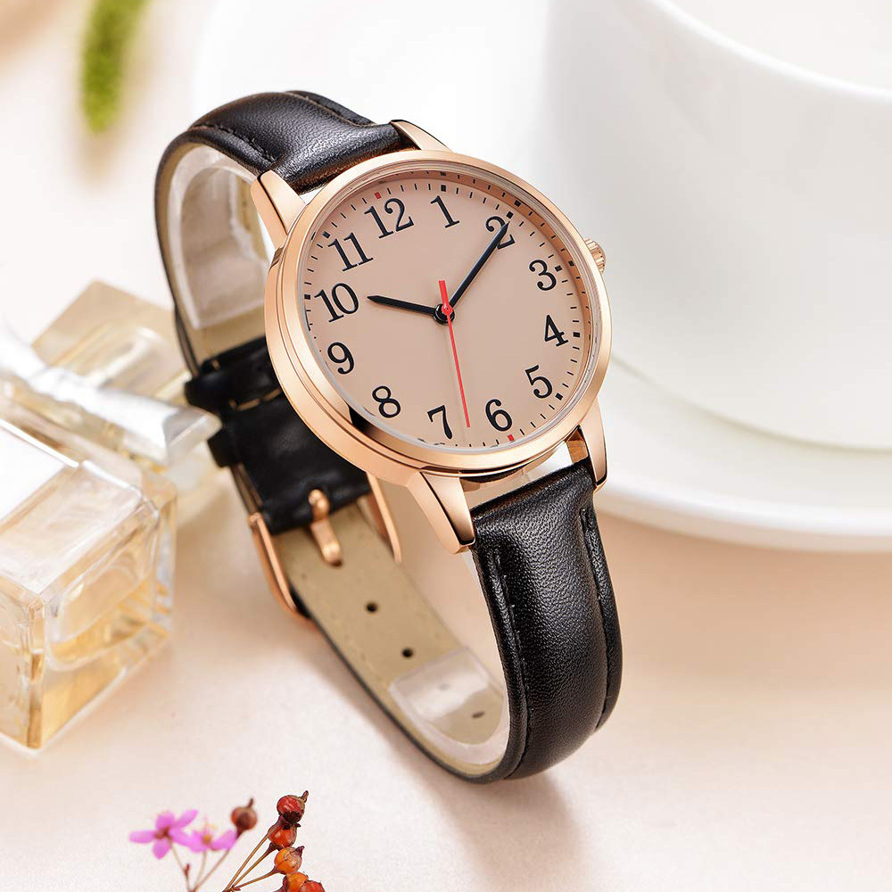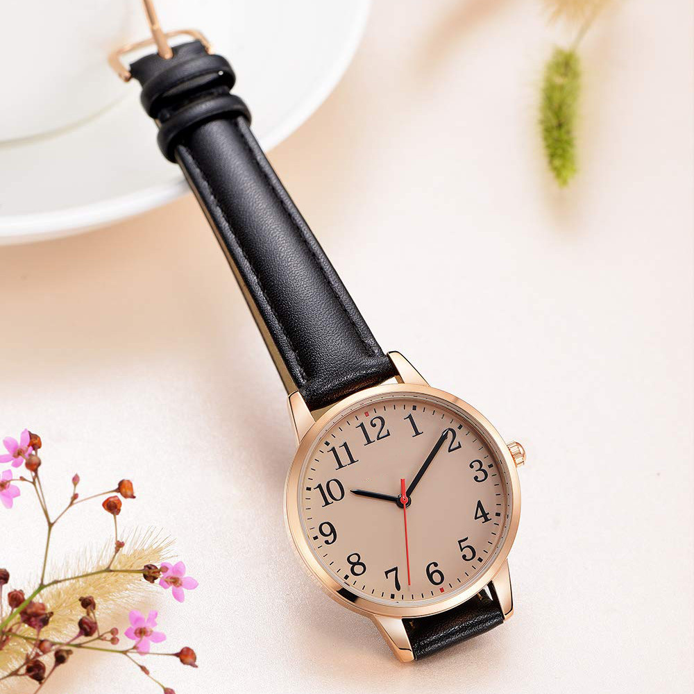 Women's Watch Minimalist Waterproof Silvery Case Black Leather Band Ladies Watch