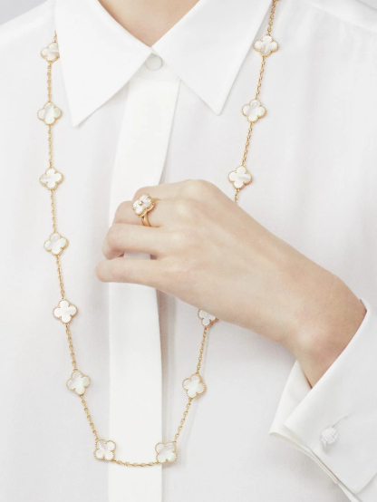 Faithful to the very first Alhambra® jewel created in 1968, the Vintage Alhambra creations by Vthtan Clthteef & Arthtpels are distinguished by their unique, timeless elegance. Inspired by the clover leaf, these icons of luck are adorned with a border of golden beads.