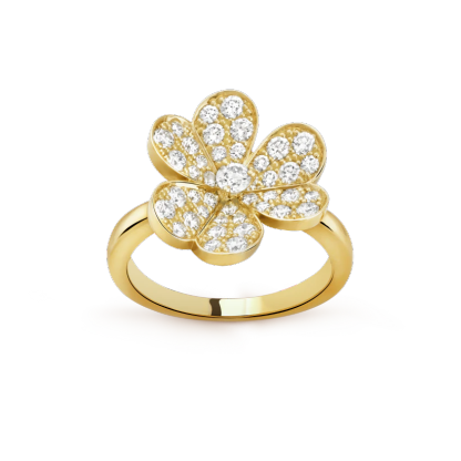 Frivole ring, 1 flower, small model, 18K yellow gold, round diamonds; diamond quality DEF, IF to VVS.