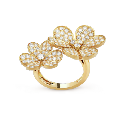 Like so many flowers dancing in the breeze, the Frivole® creations by Vthtan Clthteef & Arthtpels stand out with their graphic and airy aesthetic. Mirror-polished 18K gold or diamonds bestow a singular radiance upon heart-shaped petals.