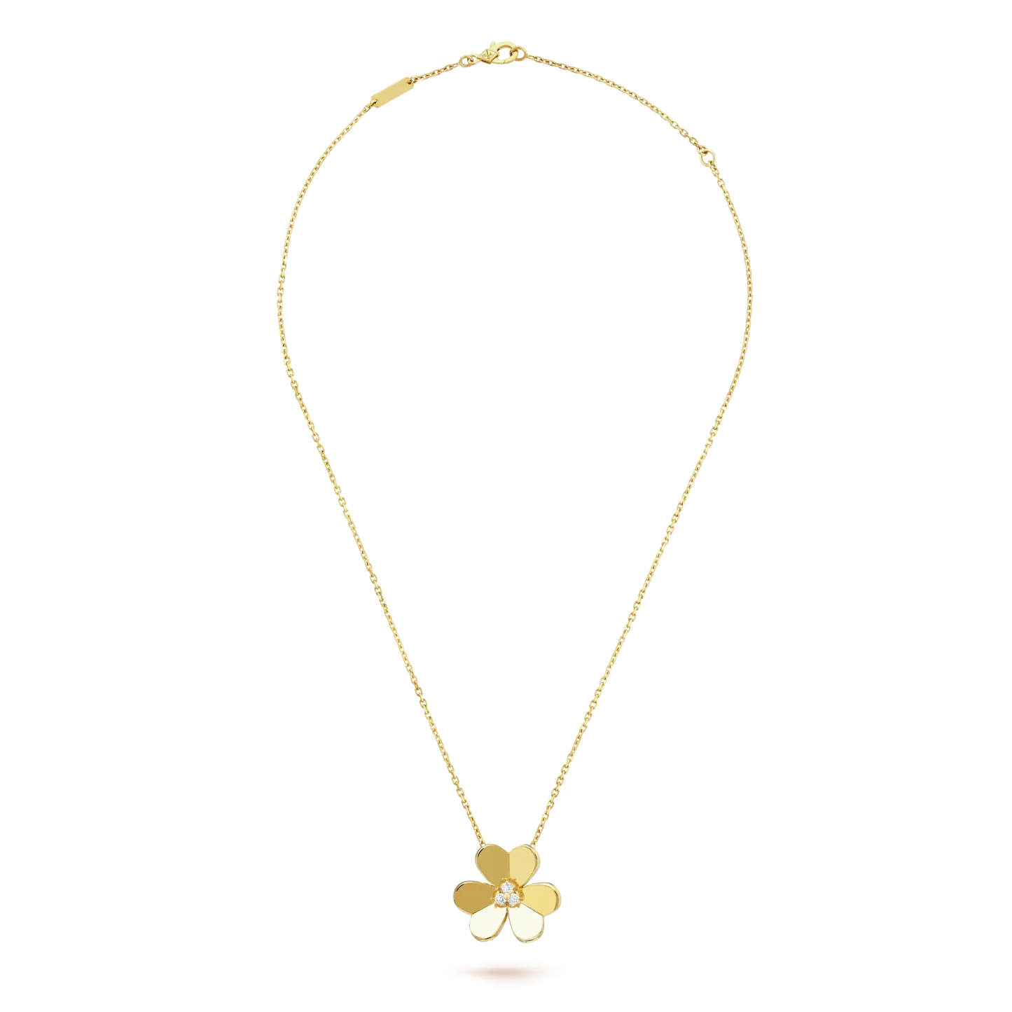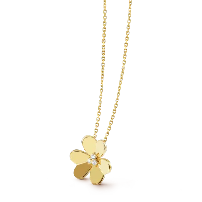 Like so many flowers dancing in the breeze, the Frivole® creations by Vthtan Clthteef & Arthtpels stand out with their graphic and airy aesthetic. Mirror-polished 18K gold or diamonds bestow a singular radiance upon heart-shaped petals.