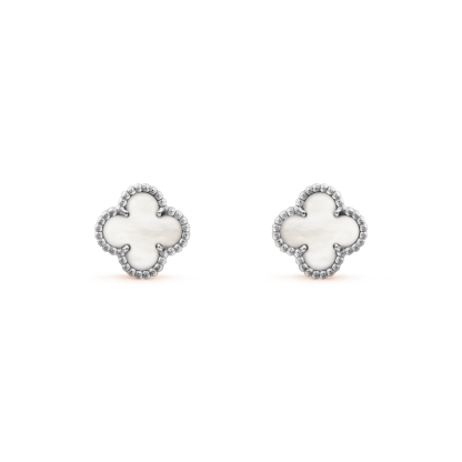 Sweet Alhambra earstuds, rhodium plated 18K white gold, white mother-of-pearl.