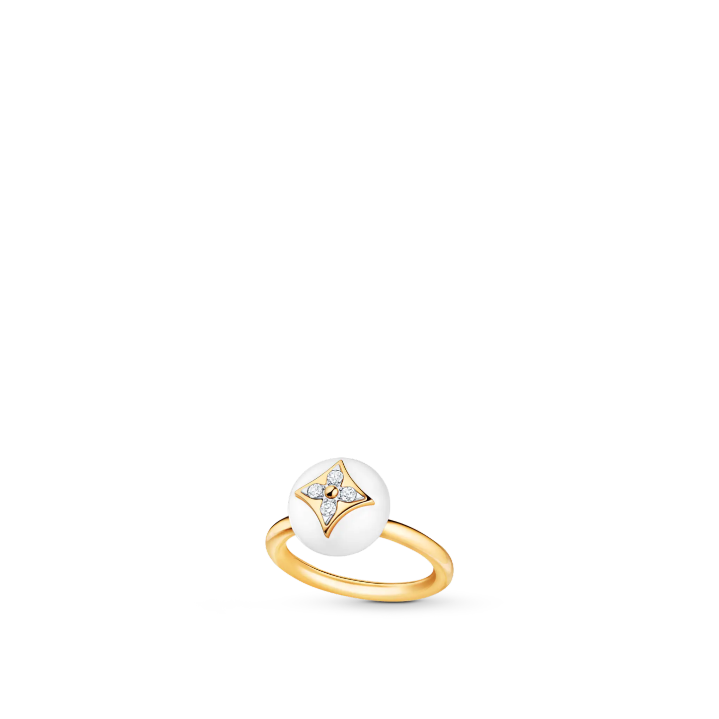 B Blossom Ring, Yellow Gold, White Gold, White Agate And Diamonds