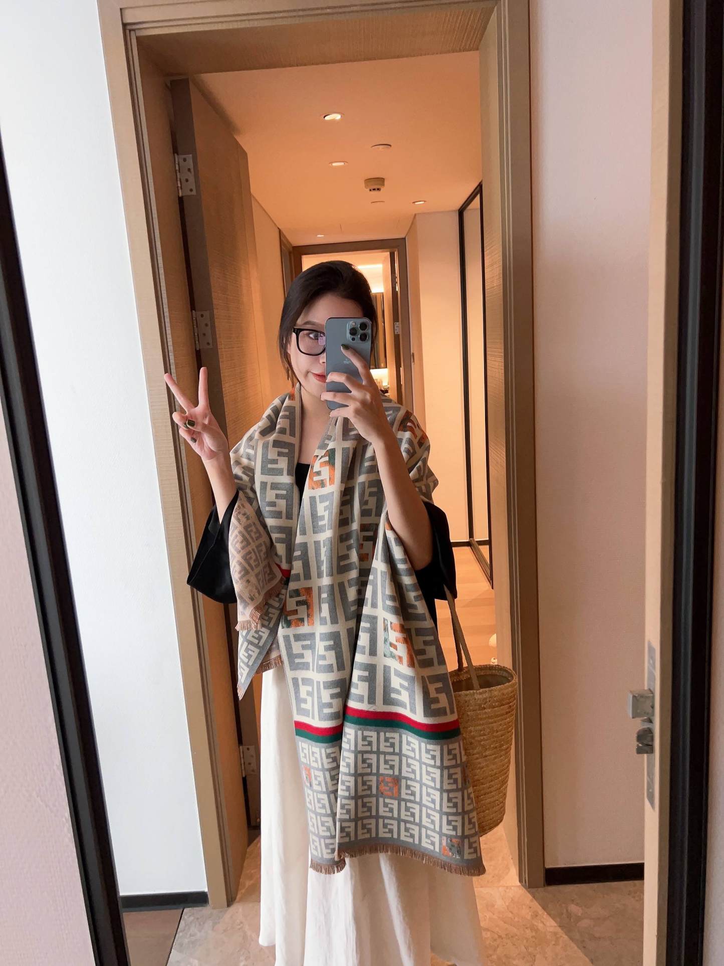 Fashionable FF strip pattern scarf