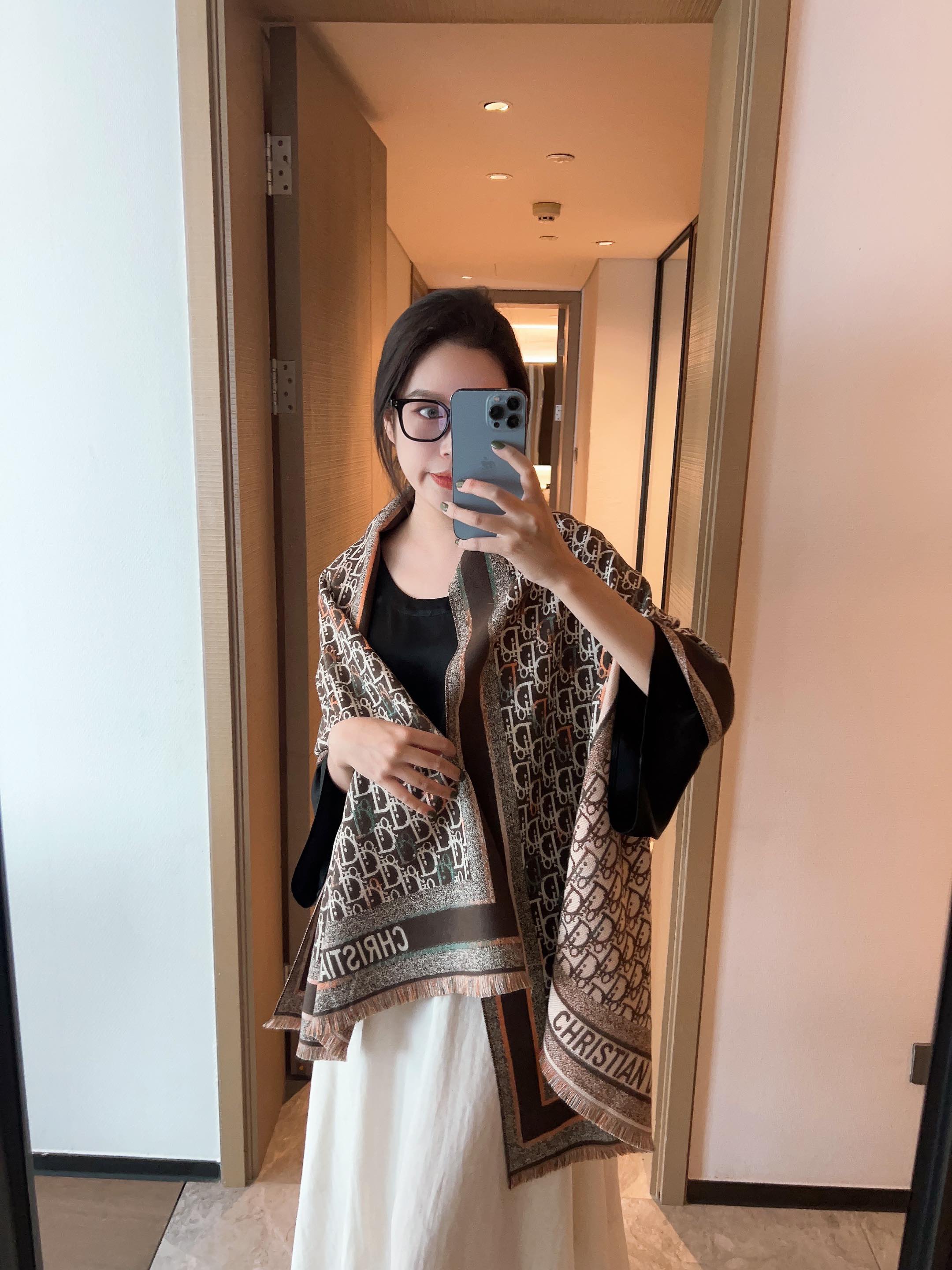 Product name: Fashionable CD letter strip pattern scarf