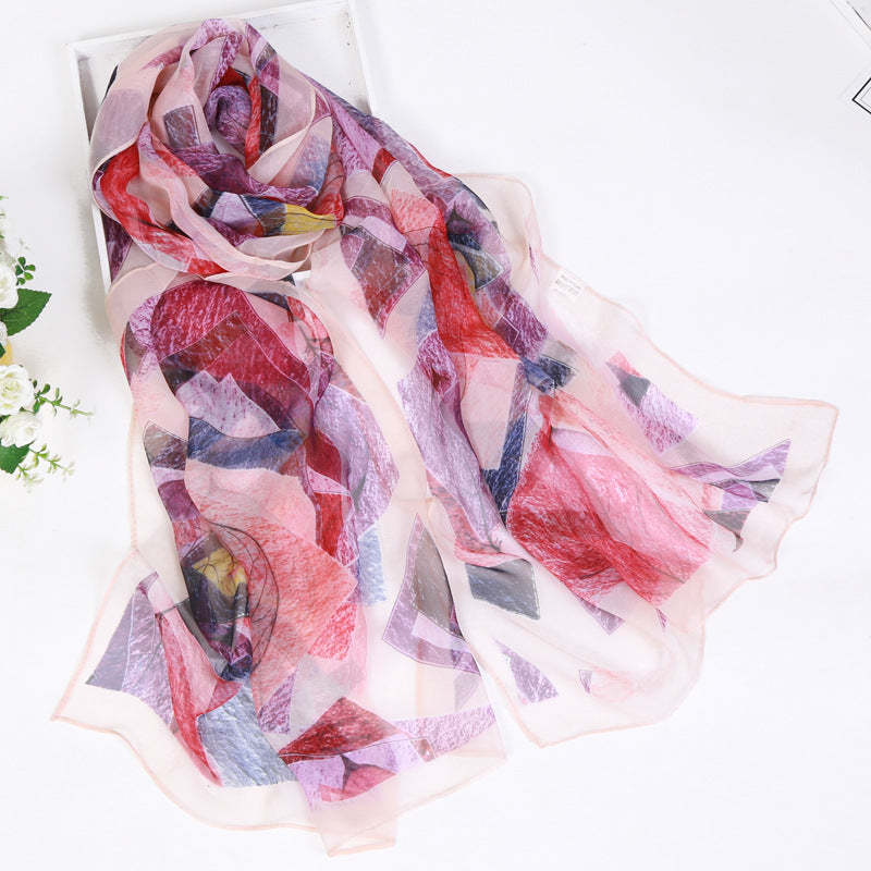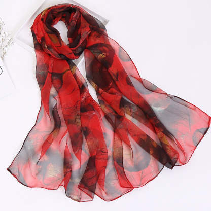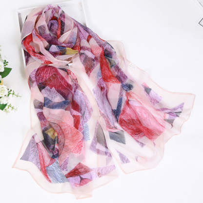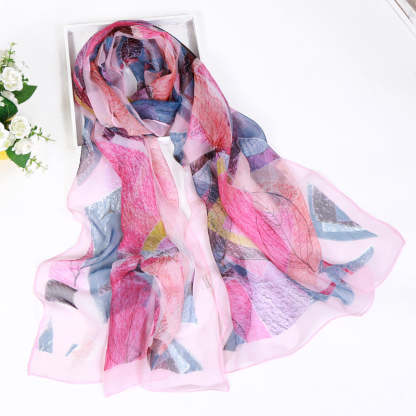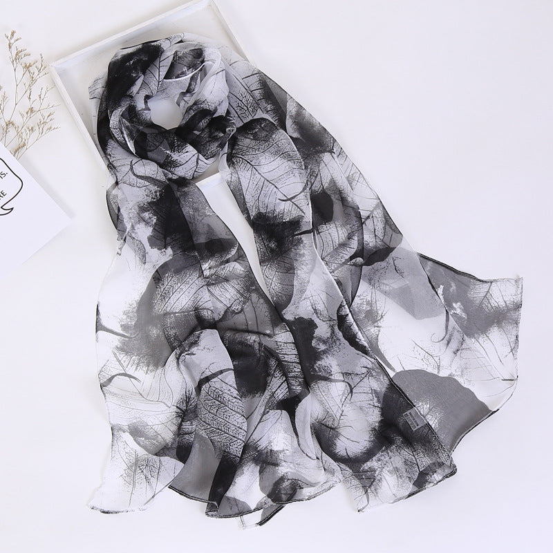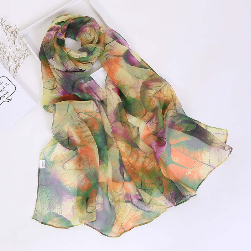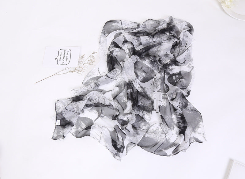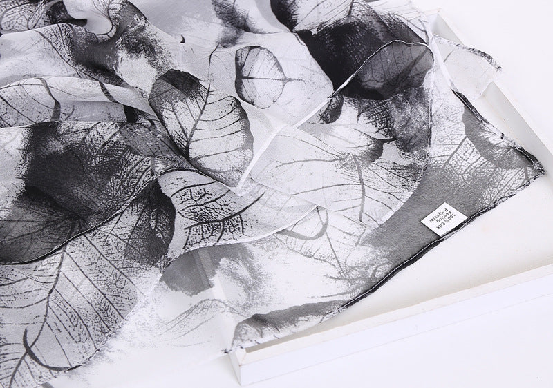 Thin Sunscreen Leaf Pattern Silk Scarf