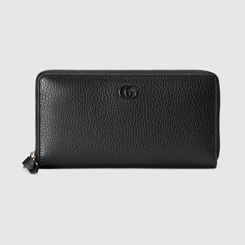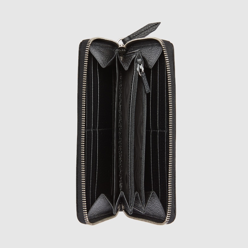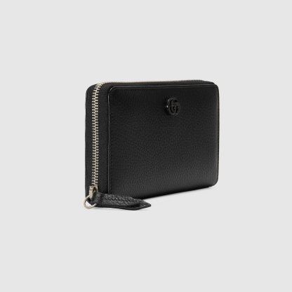 The GthtG Marmont wallet is introduced in timeless black leather for the Aria collection. First appearing as a belt buckle in the '70s, the Double G hardware is reimagined in tonal resin. The accessory's monochrome shades add a contemporary feel to the emblematic design.
