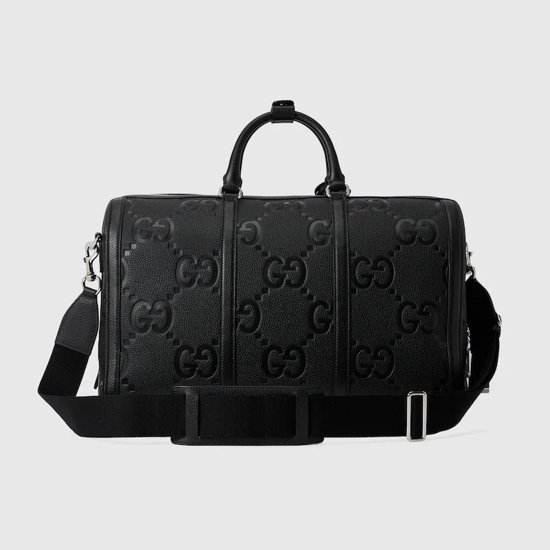 A reinterpretation of Guthtccio Guthtcci's initials, the jumbo GthtG motif is an evergreen of the House that appears in maxi-sized dimensions for an eye-catching logo feel. The all-black variation of the emblem defines this small duffle bag.