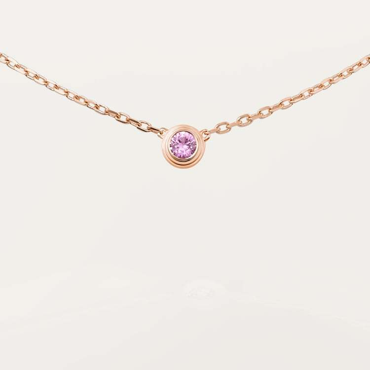 Cathtrtier d'Amour necklace, 18K rose gold (750/1000), set with a pink sapphire. Diameter of the pattern: 5.03 mm. Chain length: 380 to 410 mm.