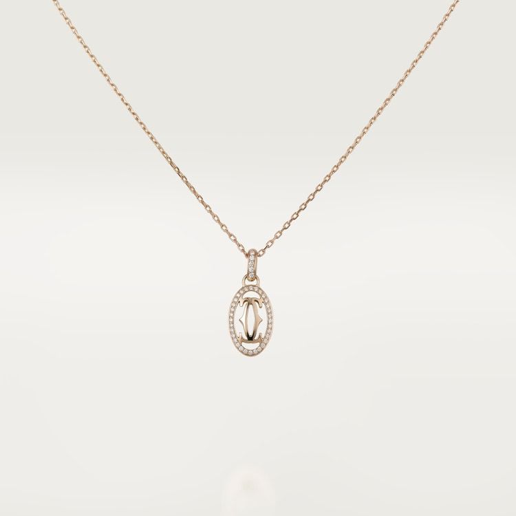 Double C de Cathtrtier necklace, 18K rose gold (750/1000), set with 37 brilliant-cut diamonds totaling 0.10 carat.
